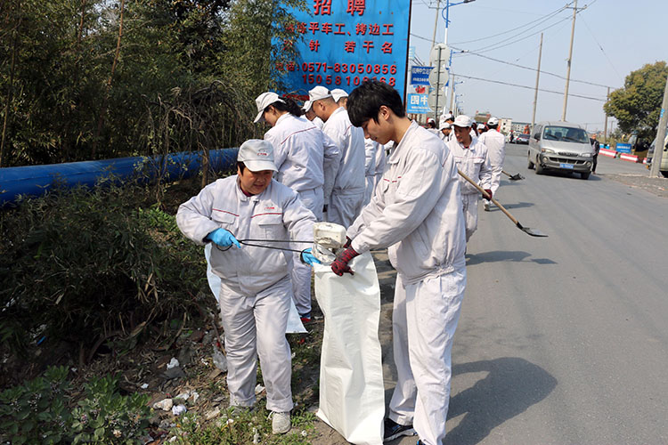 为办好G20峰会创造一个优美、整洁、舒适的新城环境,扎实推进“四边三化、两路两侧”专项行动的深入开展,在3月25日, 由大江东产业集聚区党群工作(组织)部、区总工会牵头组织开展“清洁家园、喜迎峰会”环境大清扫活动,公司120名青年志愿者参加了此次活动。