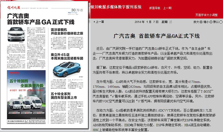 (银川晚报)广汽吉奥 首款轿车产品GA正式下线