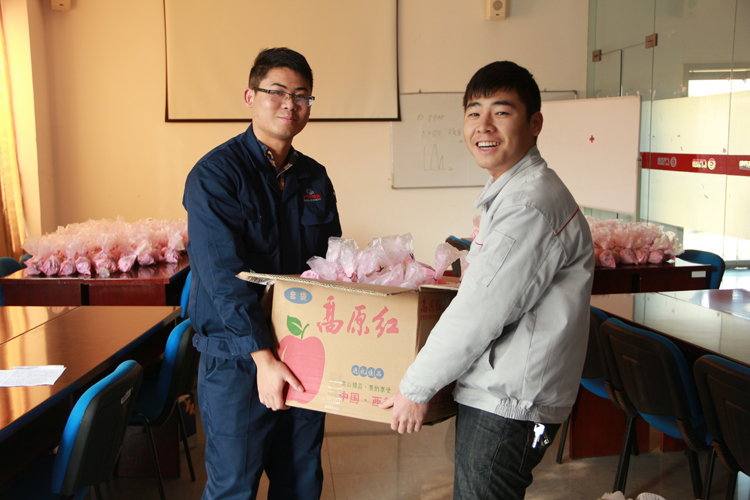 今年的平安夜,公司特地为每位工友都准备了一个苹果,祝愿他们在今后的工作、生活中都能团圆幸福、平安快乐!