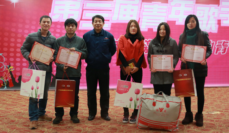 晚会期间,为第一届“广吉杯”羽毛球赛获奖选手颁奖